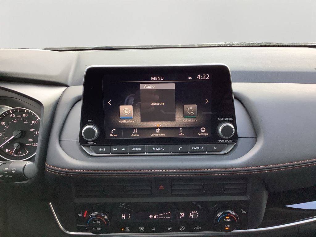 - Radio: AM/FM NissanConnect -inc: 6 speakers plus 2 tweeters, Apple CarPlay, Android Auto, 8" color touch screen display, Bluetooth®, 2 front USB type-C, Wi-Fi hotspot and NissanConnect Services powered by SiriusXM