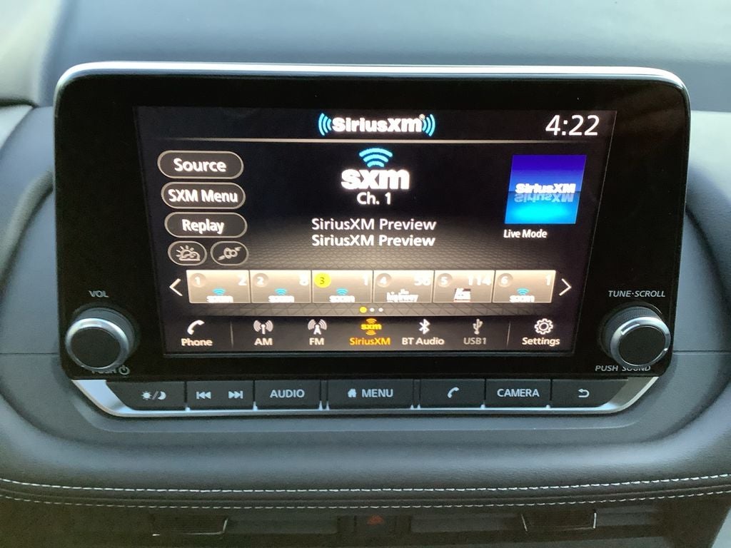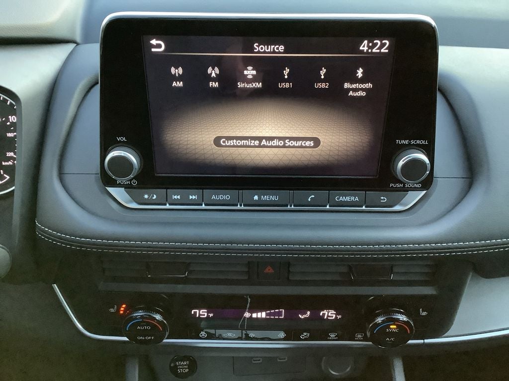 - Radio: AM/FM NissanConnect -inc: 6 speakers plus 2 tweeters, Apple CarPlay, Android Auto, 8" color touch screen display, Bluetooth®, 2 front USB type-C, Wi-Fi hotspot and NissanConnect Services powered by SiriusXM